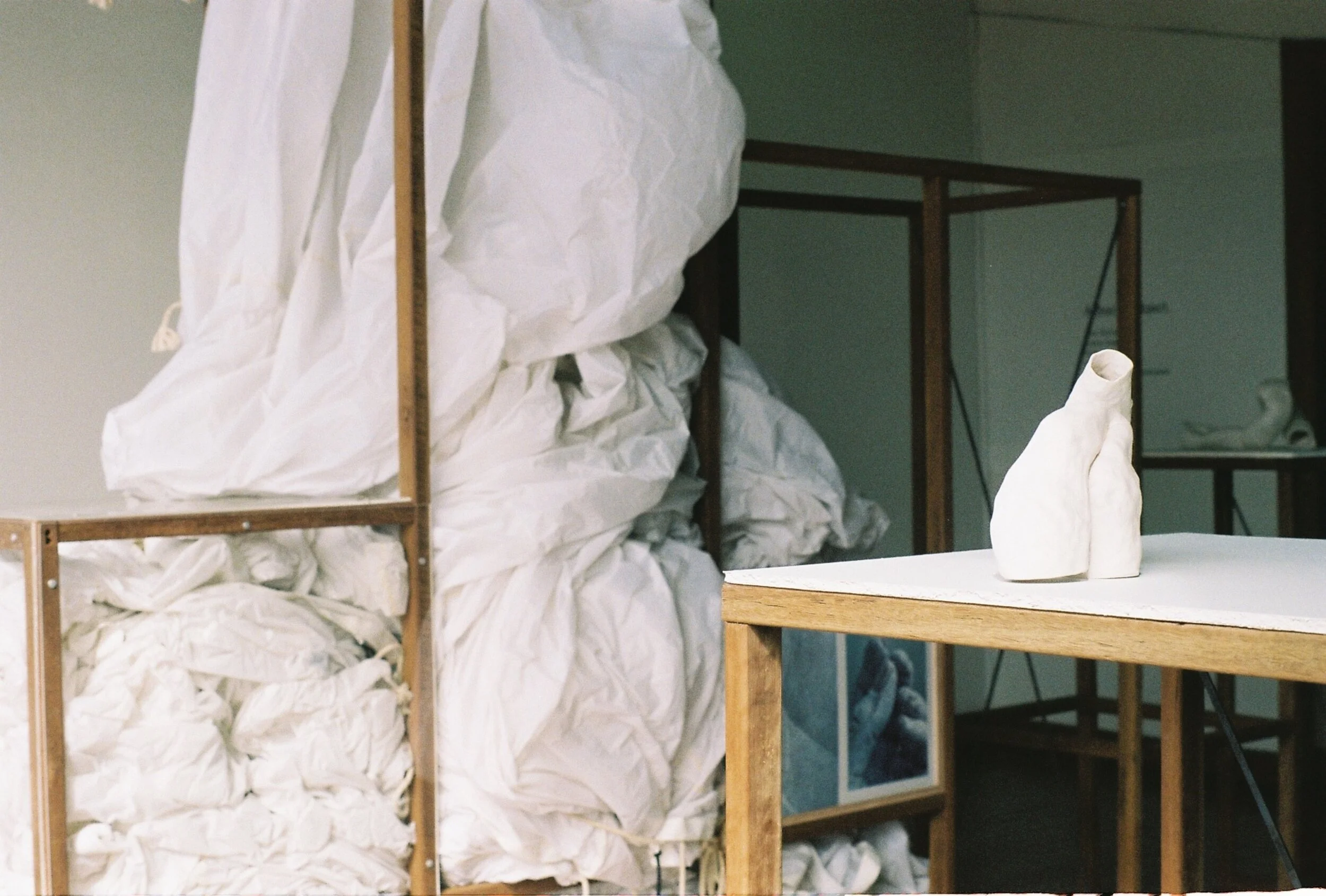 A Social Object. is a collaborative exhibition by Australian artists, Ellie Farrington, Grace Dewar, Kirsty Lee, Laurie Oxenford, Peta Berghofer, Rianna Hollsten-Provenzano and Theresa Hall. Presented by First Coat Studios (7th - 25th August 2018), A Social Object. positions the artist collective as a shared resource to provoke a new point of departure for art making. Within the parameters of their individual and combined practices, each artist has developed new work in a visceral response to The Object; a 25 x 15m white drape. Culminating in a series of sculptures, digital works and installations, A Social Object. is a site-specific exchange that explores how we connect through artforms and social spaces.